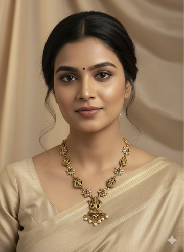 Product: Handmade South Indian Lakshmi Necklace Material: 925 SilverSeal: 925 SealPlating: 22k GoldUsage: OccasionalLength:10.5Inches (26.67...