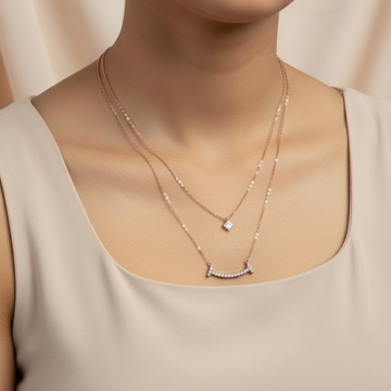 Rose Gold Coated Diamond Inspired Silver Necklace 308